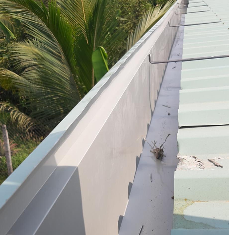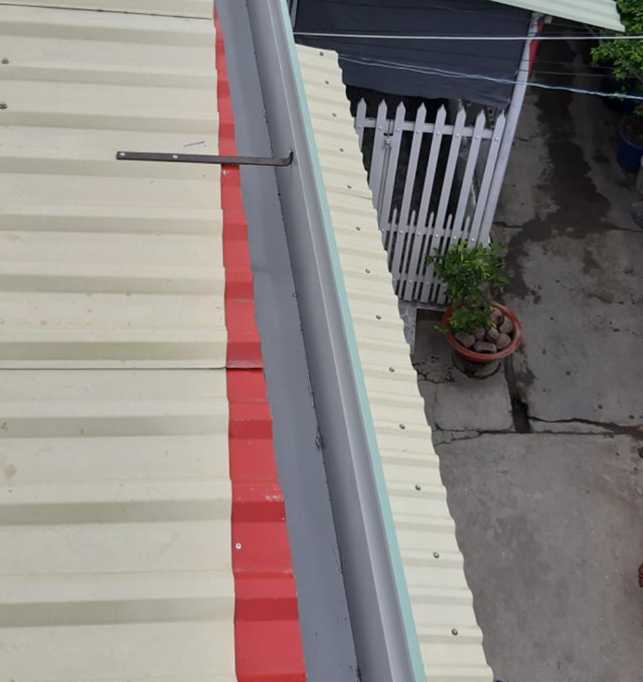 Giải pháp: máng xối tôn mạ màu hoặc tôn kẽm dày 0.45–0.55 mm.