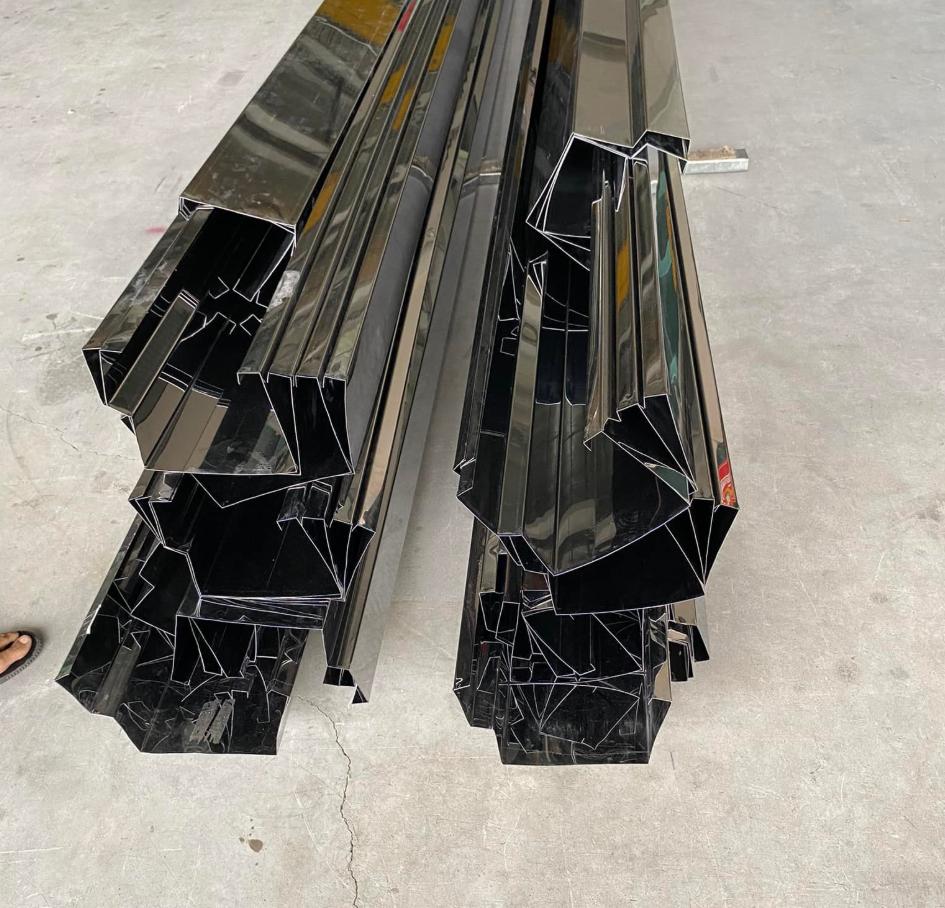 Máng xối được gia công theo kích thước thực tế của mái. Quy trình uốn, cắt, bo góc được thực hiện chuẩn xác để đảm bảo độ kín.