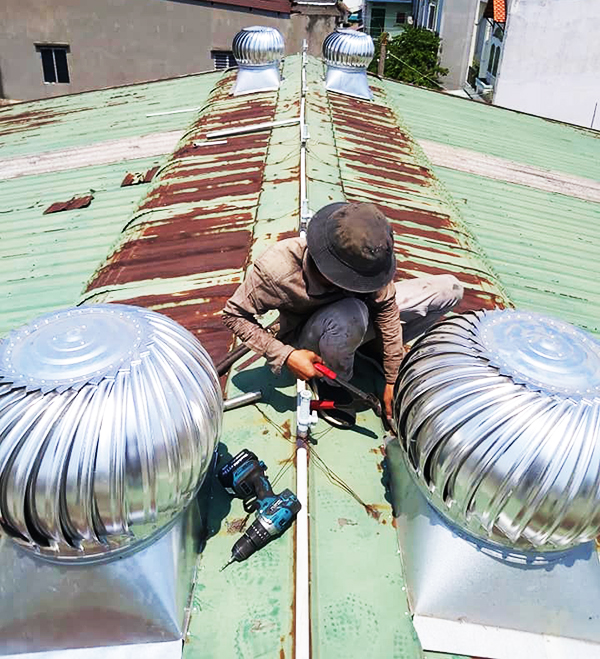 Thiết bị xoay êm, nhẹ và không tạo tiếng ồn nếu lắp đúng kỹ thuật. Hân Phát luôn đảm bảo lắp đặt chắc chắn, chống rung và chống dột tuyệt đối.