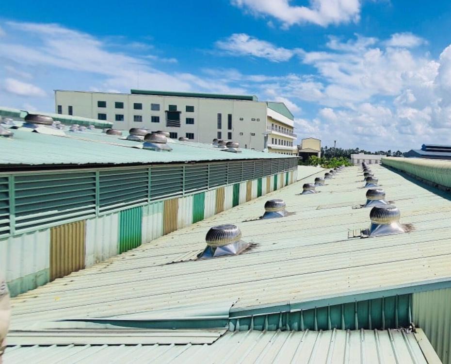 Cách xử lý: Tạo độ dốc thoát nước bằng xi măng chống thấm, kết hợp lưới thủy tinh và sơn phủ gốc acrylic. Với các mái tôn có ô thông gió, chúng tôi tạo “cổ áo” chống thấm xung quanh để nước không thể len lỏi vào.